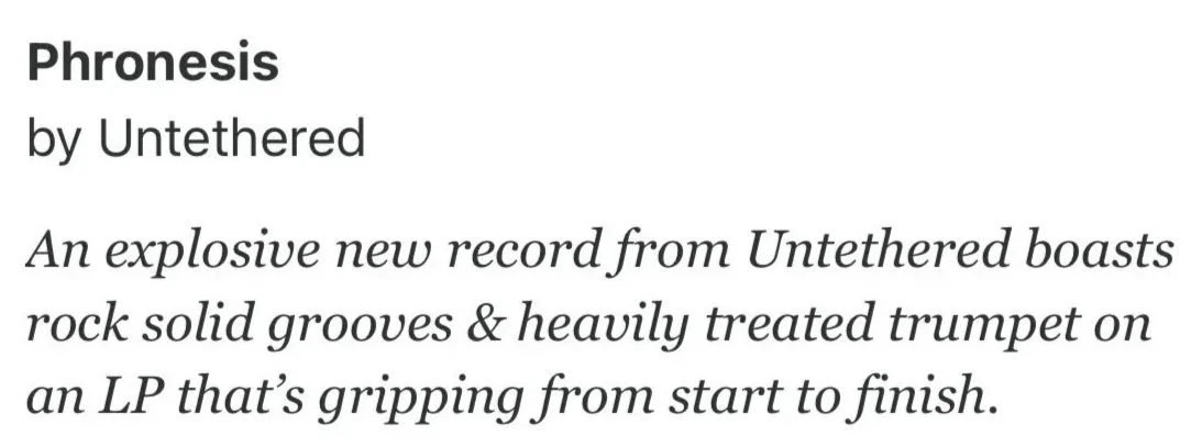 Alex Lester Writes for Chaotic Good Jazz “Untethered is more than the name of the band, it’s the principle behind their playing. On stage, these musicians seem to loosely orbit each other, each influenced by the other three, but maintaining their individuality and never colliding with one another to create something otherworldly.”